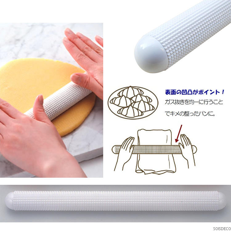 凹凸表面设计,可将面团里的空气压出来,是擀压面团时候非常有效率的擀面杖